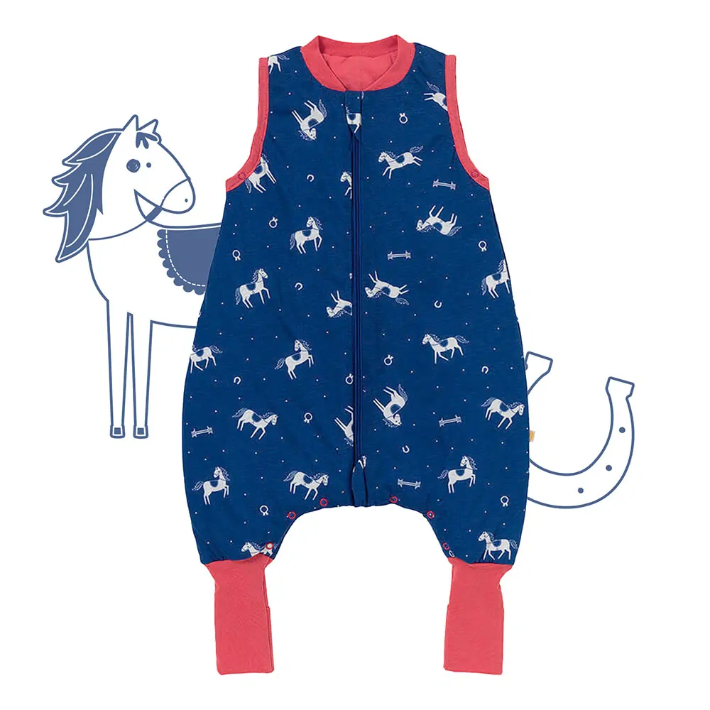 Tento protisklzový spací vak s voľnými nohami „DUPAČKY“ s motívom Koníci je vyrobený zo 100% BAVLNY .