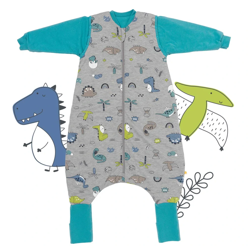 - MODAL - DINOSAUR CELOROČNÝ PROTISKLZOVÝ spací vak s odopínateľnými rukávmi a s voľnými nohami „DUPAČKY“, 100cm